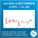 Im September schloss der DAX bei 23.880,72 Punkten und damit -0,09 Prozent (-21,49 Punkte) niedriger als im Vormonat. Von den 22 Handelstagen dominierten 13 negative gegenüber 9 positiven. Der DAX erreichte in diesem Monat ein Intraday-Hoch von 24.046,85 Punkten. Das Verlaufstief lag bei 23.284,67, was […]