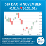 Im November schloss der DAX bei 23.836,79 Punkten und damit -0,51 Prozent (-121,51 Punkte) niedriger als im Vormonat. Von den 20 Handelstagen dominierten 11 positive gegenüber 9 negativen. Der DAX erzielte in diesem Monat ein Intraday-Hoch von 24.441,28 Punkten. Das Verlaufstief lag bei 22.943,06, was […]